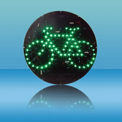 MFJ-300-G green bicycle lights light board with high brightness light-emitting diode chips AlInGap and InGaN as a product of a light source, low power consumption, long life, maintaining a reasonable cost of the product. Applies to a single lane, etc.