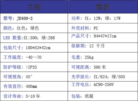JD400-2 LED網絡型紅綠滿屏信號燈 采用超高亮度發光二極管芯片AlInGaP和InGaN作為產品的光源,低功耗,長壽命,維持產品合理成本。 特殊的電路設計,即使個別LED損壞也不影響其它LED的正常工作,光學分布均勻。