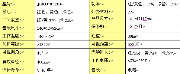 JD400-3-RYG 三單元滿屏組合LED交通信號(hào)燈 采用超高亮度發(fā)光二極管芯片AlInGaP和InGaN作為產(chǎn)品的光源,低功耗,長(zhǎng)壽命,維持產(chǎn)品合理成本。